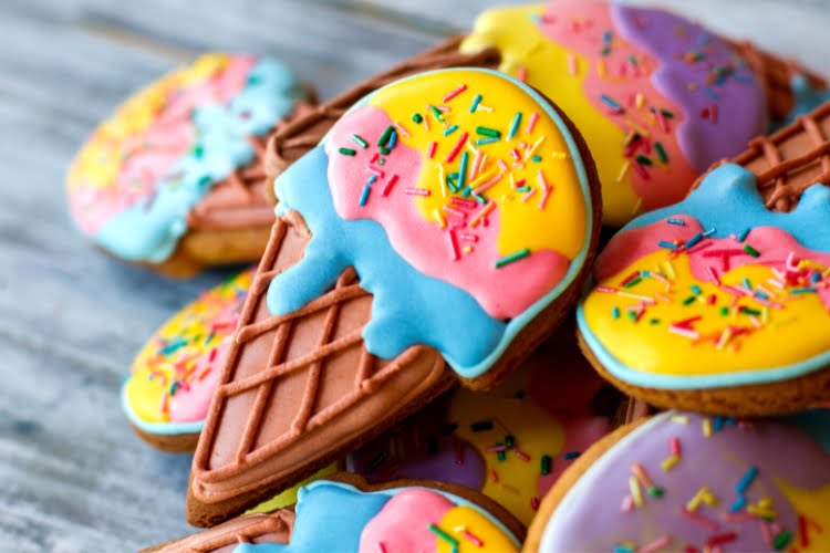 Uma excelente forma de destacar seus produtos, é usar glacê especial que dê para modelar bem sobre os biscoitos. Inclusive, não deixe de usar cores extravagantes para realmente atrair o público!
