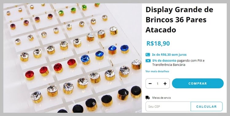 Na própria internet ou na região da 25 de Março, em São Paulo, você consegue achar fornecedores vendendo brincos simples onde cada par sai por R$ 0,52 Centavos. Então é possível revender por R$ 5 Reais, por exemplo, e ter um lucro absurdo em cada produto.