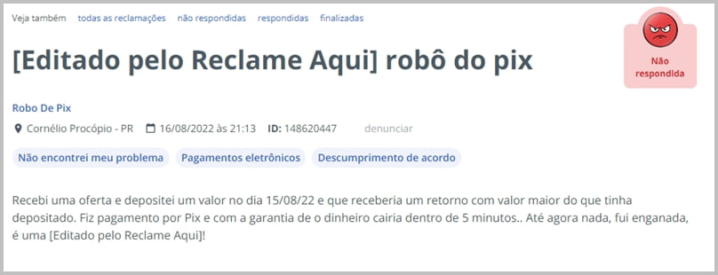 No próprio Reclame Aqui existem centenas de reclamações de pessoas que caíram nesse tipo de esquema e perderam seu dinheiro. Veja alguns exemplos de reclamações que existem por lá: